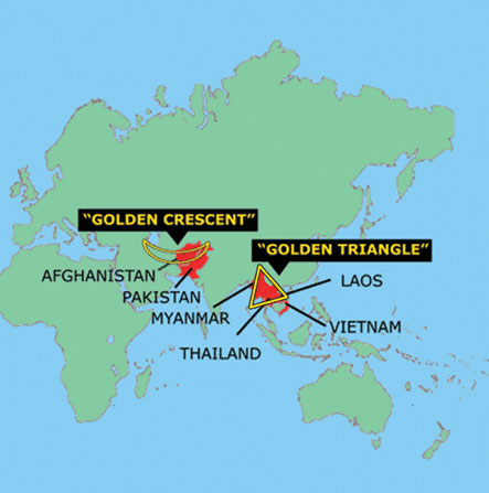 知識小百科:金三角是緬甸、寮國、泰國交界地區,盛產罌粟,並通過當地軍閥、毒梟等製造鴉片、海洛因等毒品,而聞名世界。