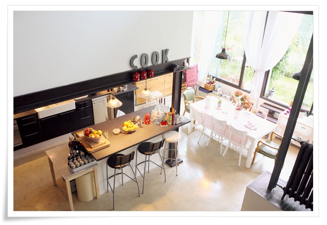 對來自南法,一直都是住在公寓的Sandra來說,巴黎的居住環境並不理想。於是一直渴望能搬到綠意盎然,環境更悠閒舒適的她,在市郊Montreuil地區買了一棟房子。Sandra與建築師友人商量之後,決定將原本是鈕扣工廠的建築物,改造成以廚房為中心的開放式空間。經過六個月的改造工程,工廠搖身一變為擁有開放式廚房的溫馨之家,還有能看見戶外隨風搖曳的樹葉,採光良好的飯廳,一切是那麼的舒適溫馨。