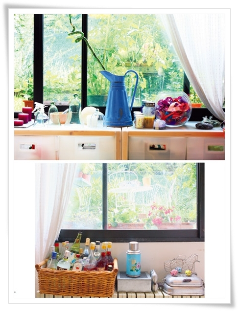 靠窗的櫃子和暖氣機上,擺著Sandra鍾愛的雜貨,水藍色壺子可是古董喔!Sandra笑著說:「冬天一到,暖氣機上就不能擺東西啦!」她的廚房和飯廳猶如雜貨迷的百寶箱。