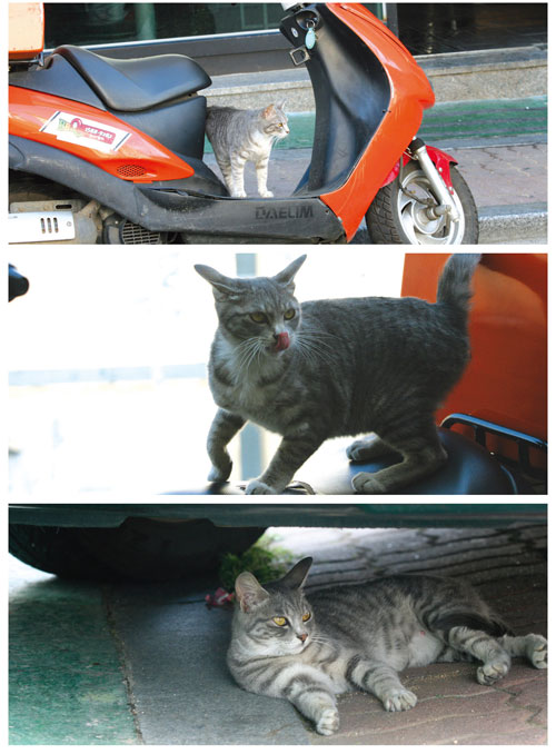 從那天起後我固定會在摩托車車廂中放些貓飼料,