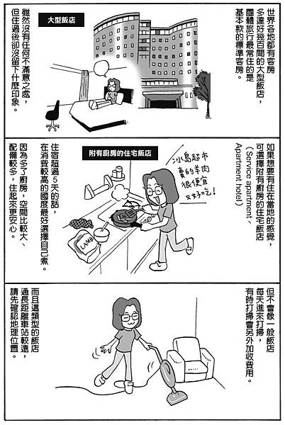 我比較喜歡附有廚房的住宅飯店,不但可以煮飯,空間也比較大。